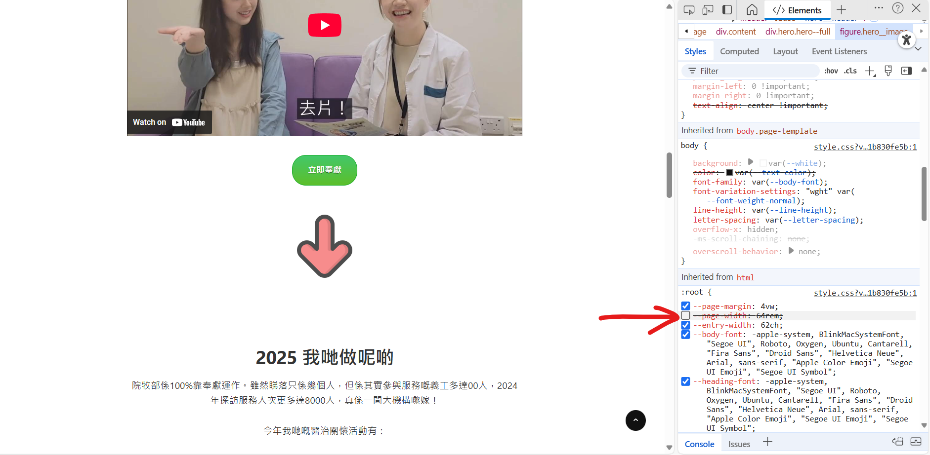 If the content is still left-aligned, inspect the page again to find the text-align: left rule that’s overriding our centering rules: